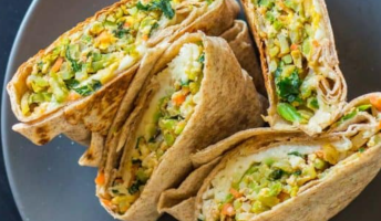Divide filling into 4 and add 1/4 to the center of each tortilla. For from the bottom into the center, then fold in sides and turn around. (Watch video for demonstration).
